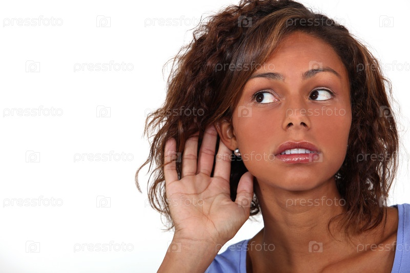 Женщина приложила руку к уху