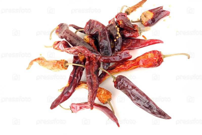 Горький перец красного цвета на белом фоне