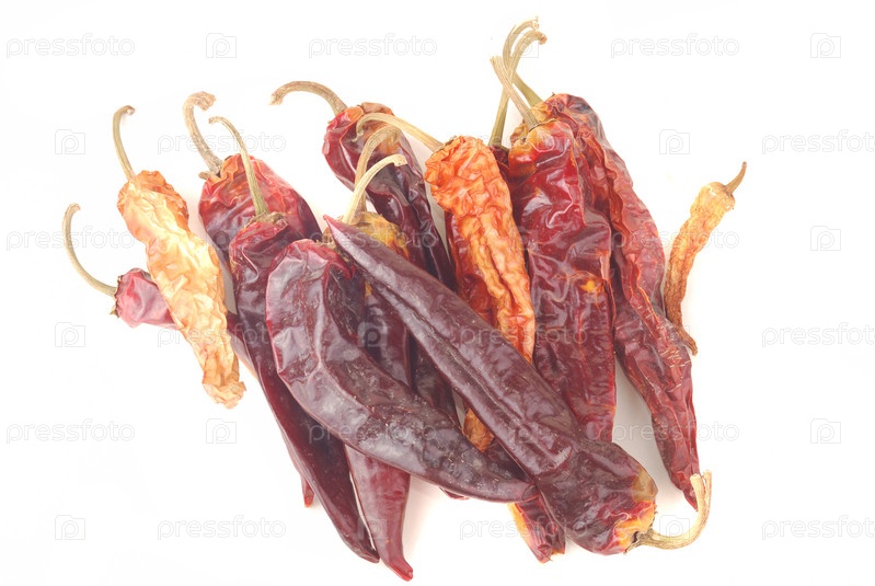 Горький перец красного цвета на белом фоне