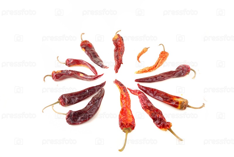 Горький перец красного цвета на белом фоне