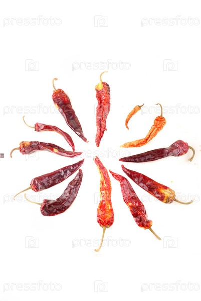 Горький перец красного цвета на белом фоне