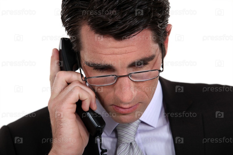 Заинтересованный бизнесмен говорит по телефону