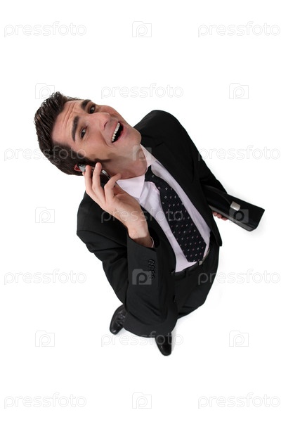 Бизнесмен разговаривает по телефону и смеется
