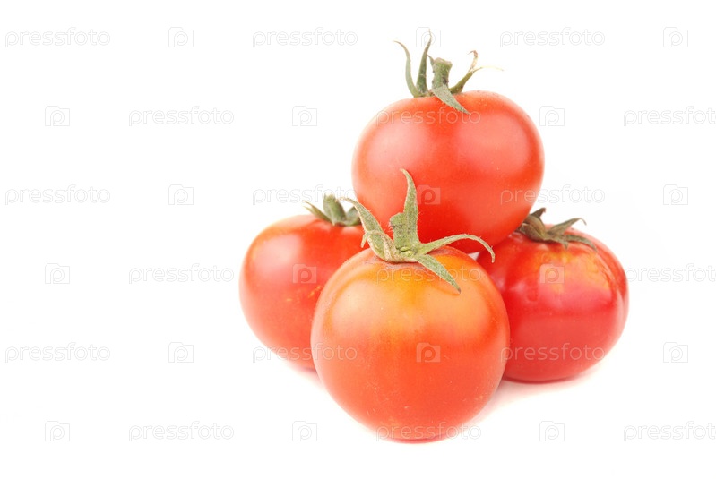 Спелые помидоры на белом фоне