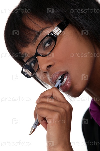 Бизнес-леди в очках кусает ручку