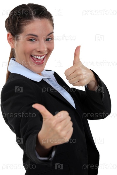 Бизнес-леди показывает два пальца вверх