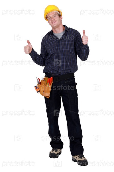 Строитель показывает два больших пальца вверх
