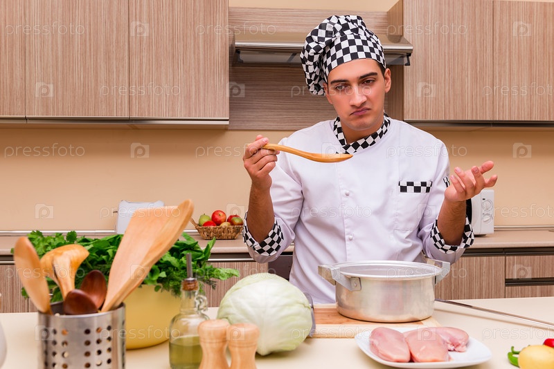 Молодой повар на кухне