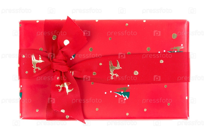 Красная подарочная коробка с лентой и бантом