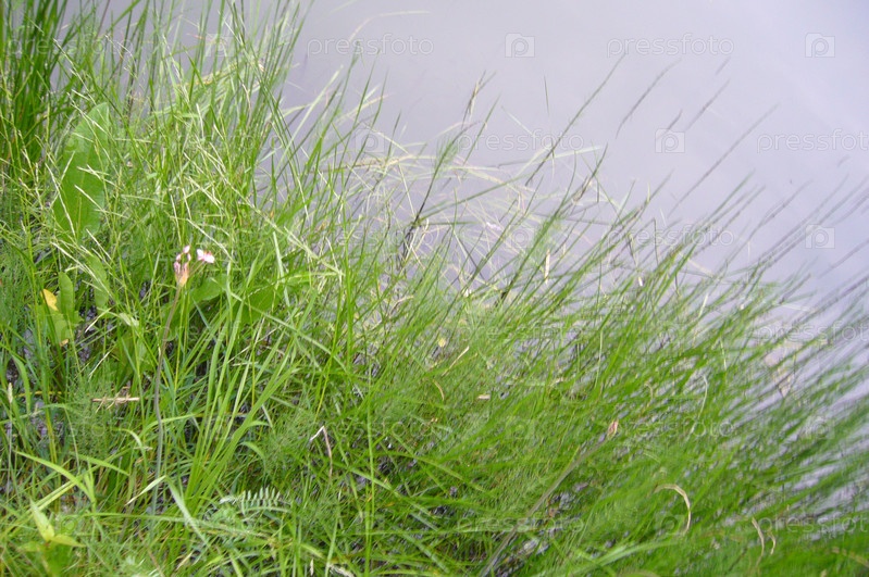 Зеленая трава растет около воды