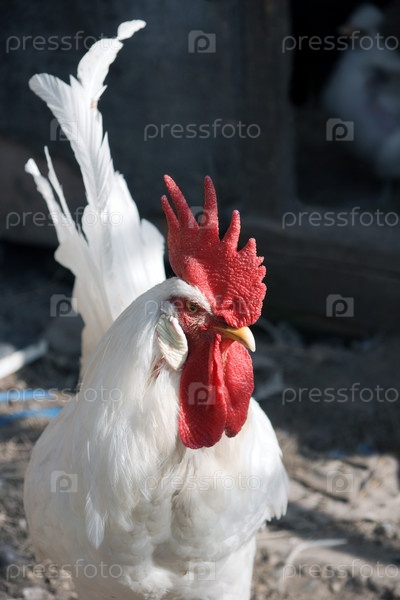 Красивый белый петух на темном фоне