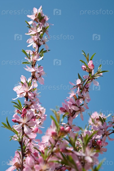 Ветка цветущего миндаля на фоне ясного неба