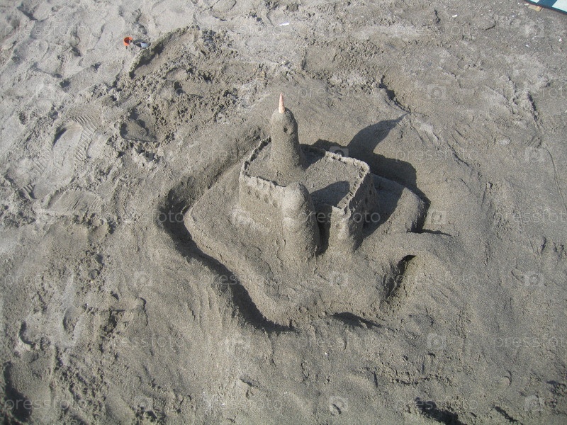 Детские постройки из песка на пляже в Коста Дель Соль, Испания