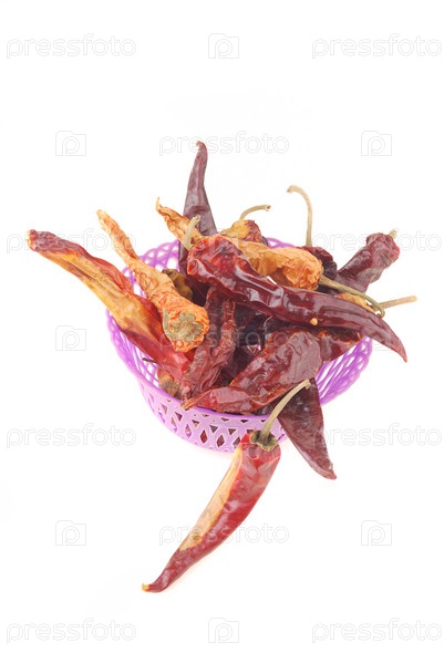 Красный перец в чашке на белом фоне