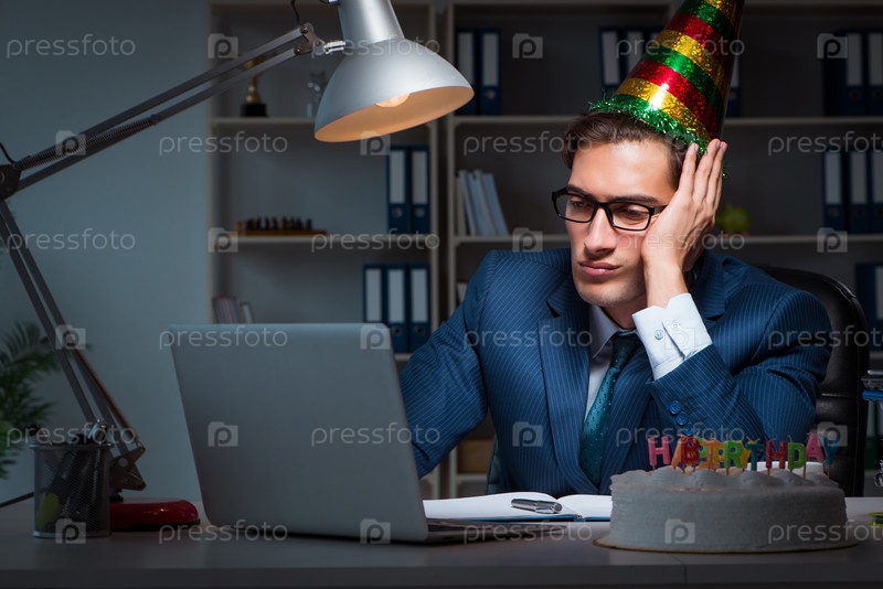 Человек празднует день рождения в офисе