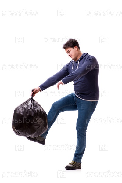 Человек с мешком мусора