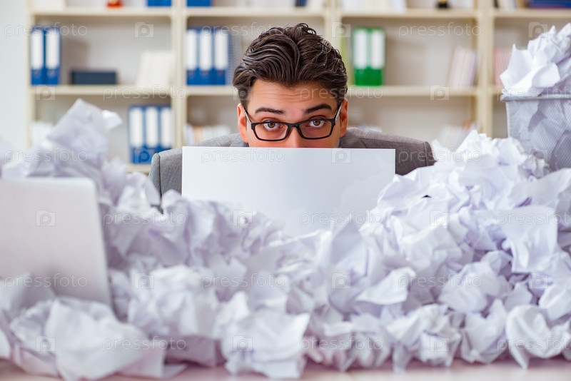Бизнесмен в концепции переработки бумаги в офисе