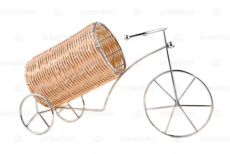 Подставка под бутылки в виде велосипеда с плетеной корзиной