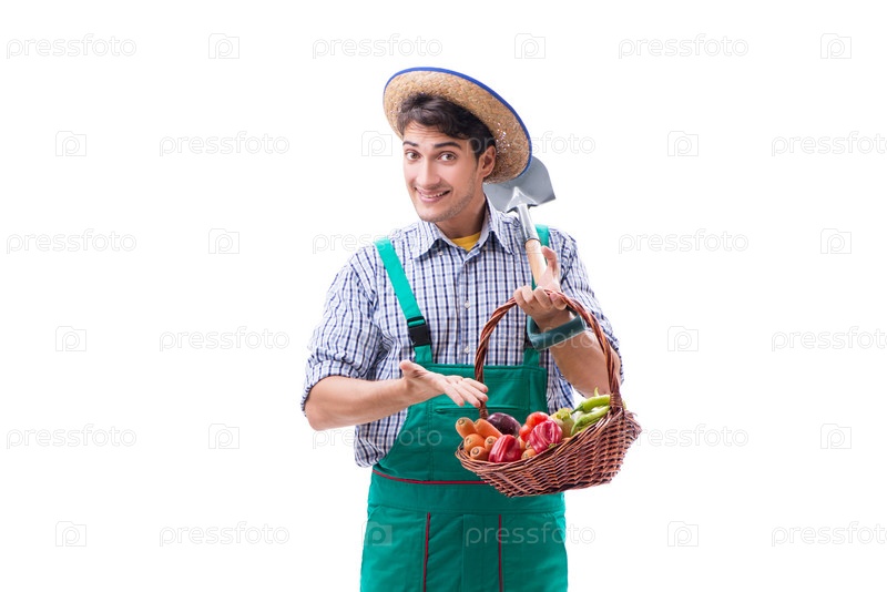 Молодой фермер, изолированный на белом фоне