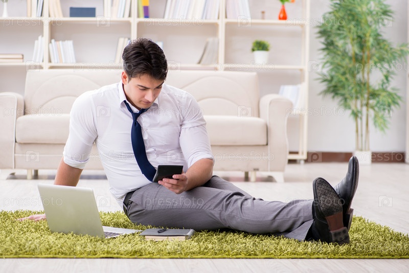 Бизнесмен, сидя на полу в офисе