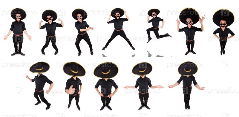 Забавный человек, одетый в мексиканское сомбреро