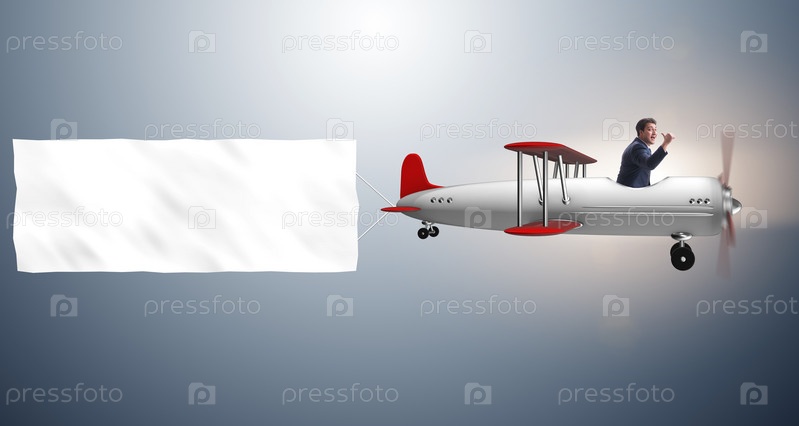 Биплан с бизнесменом и пустой баннер