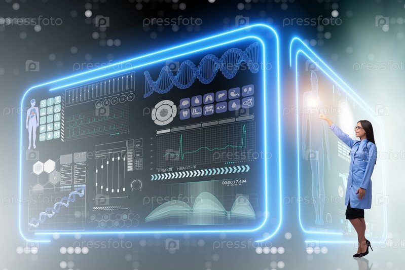 Женщина-врач в футуристической медицинской концепции