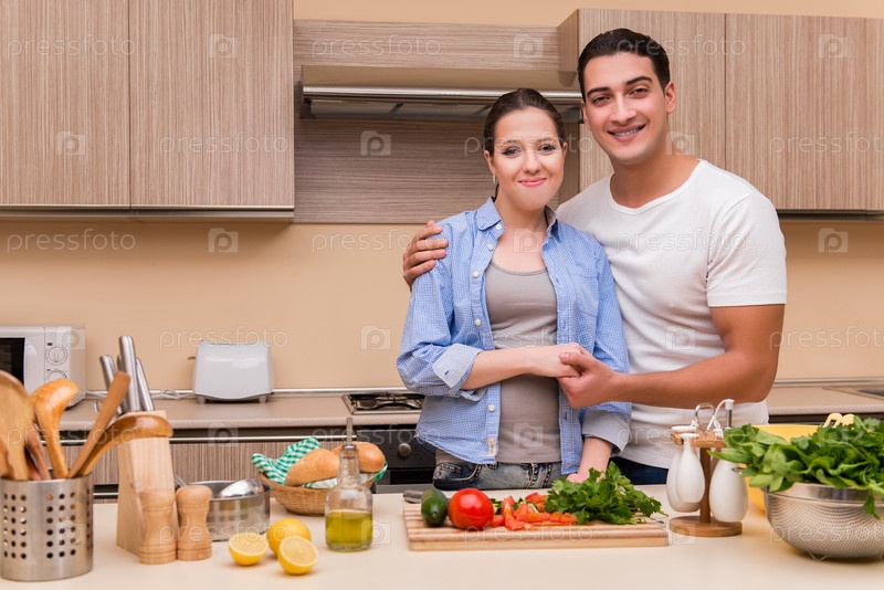 Молодая семья на кухне