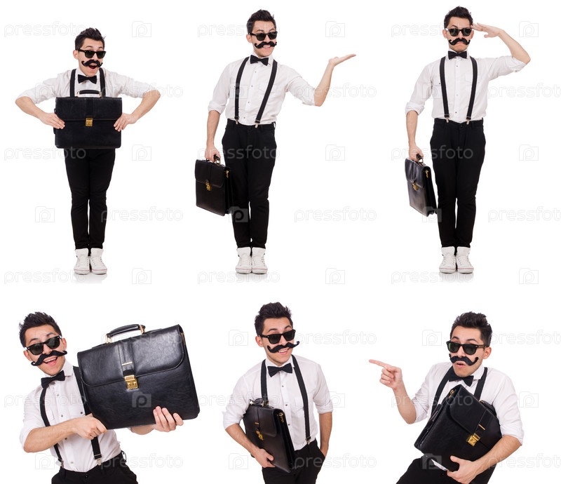 Смешной молодой человек с портфелем