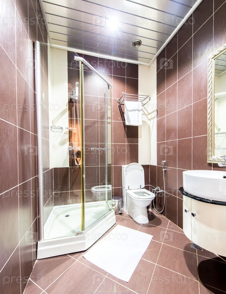 Современный интерьер ванной комнаты в отеле