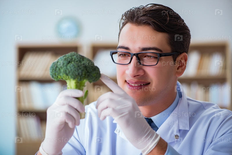 Ученый, изучающий овощи