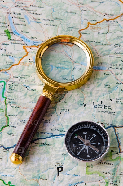 Концепция путешествия с компасом и картой