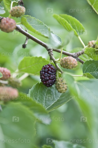 Ягоды черной шелковицы (Morus черная). тутовник.Тутовое дерево
