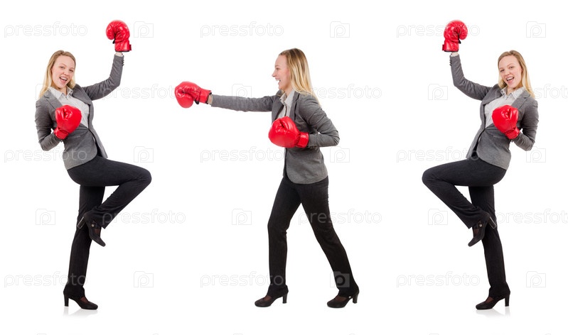 Женщина предприниматель с боксерскими перчатками