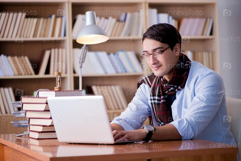 Молодой автор, работающий в библиотеке