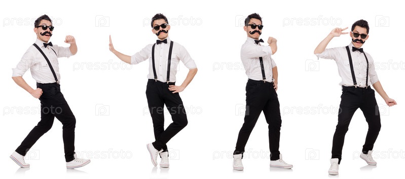 Молодой человек с усами на белом