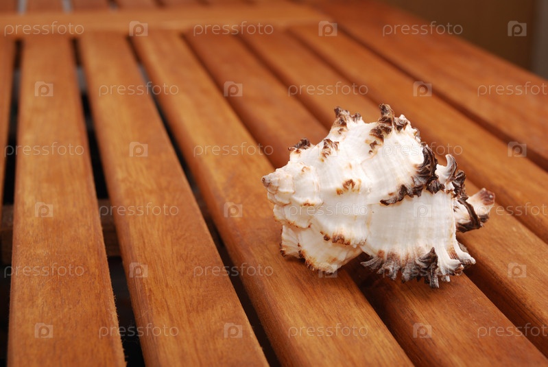 Морская раковина на деревянных досках