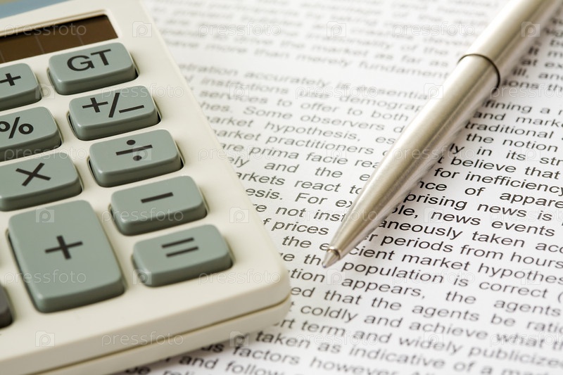 Макро изображение калькулятора и ручки на деловом документе