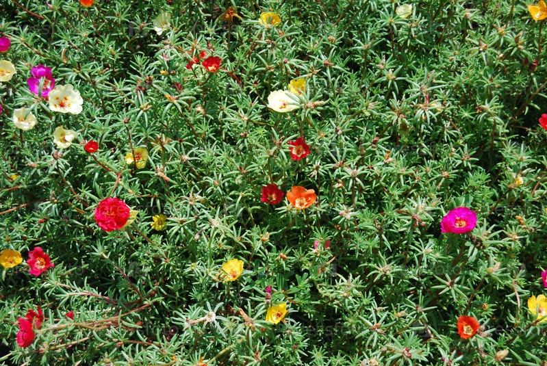 Мелкие цветы на клумбе