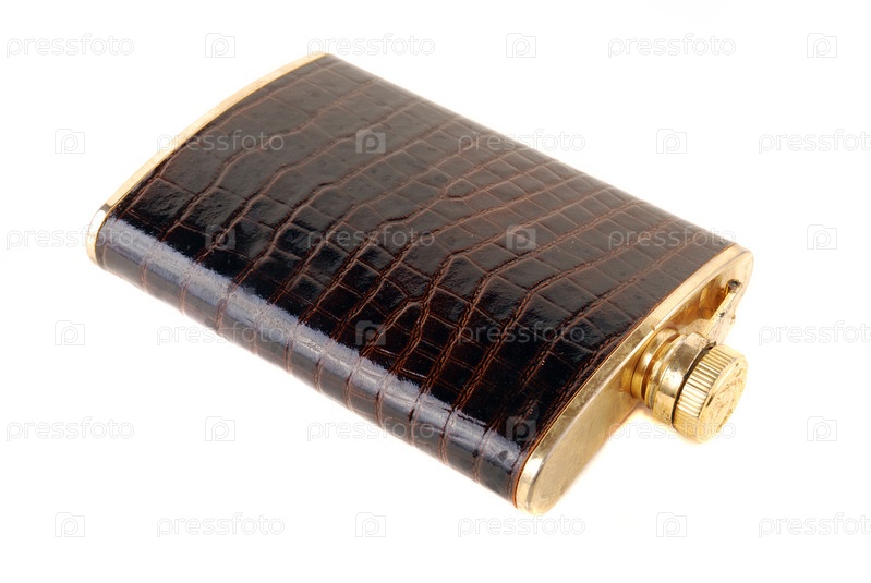 Кожаная фляжка на белом фоне