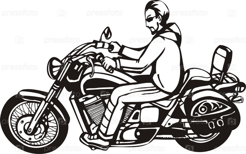Байкер на мотоцикле, векторная иллюстрация