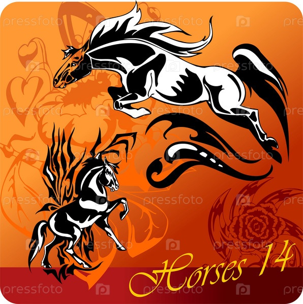 Огненные лошади. Векторная иллюстрация