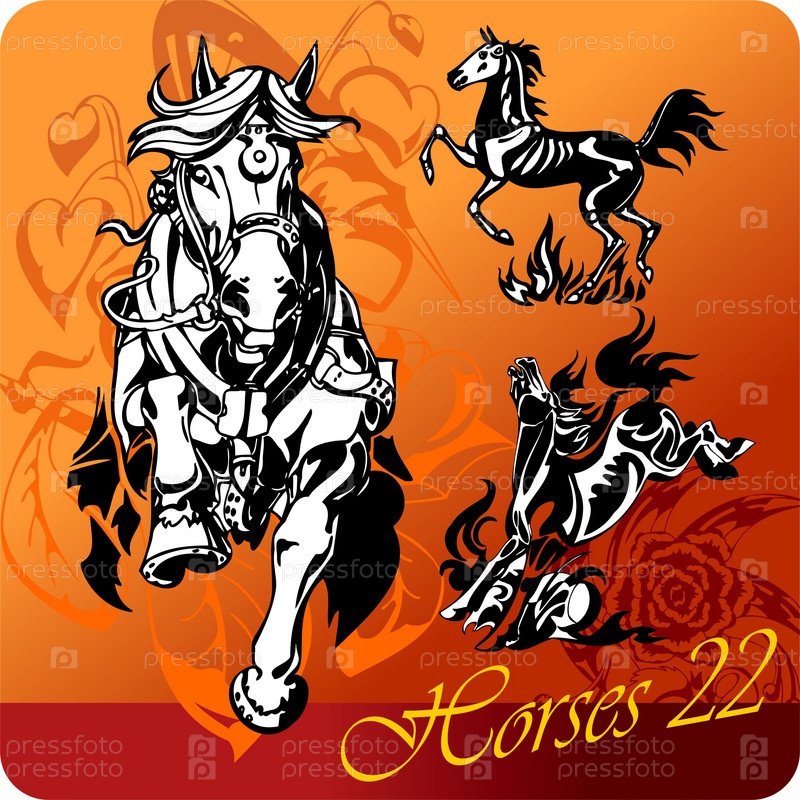 Огненные лошади. Векторная иллюстрация