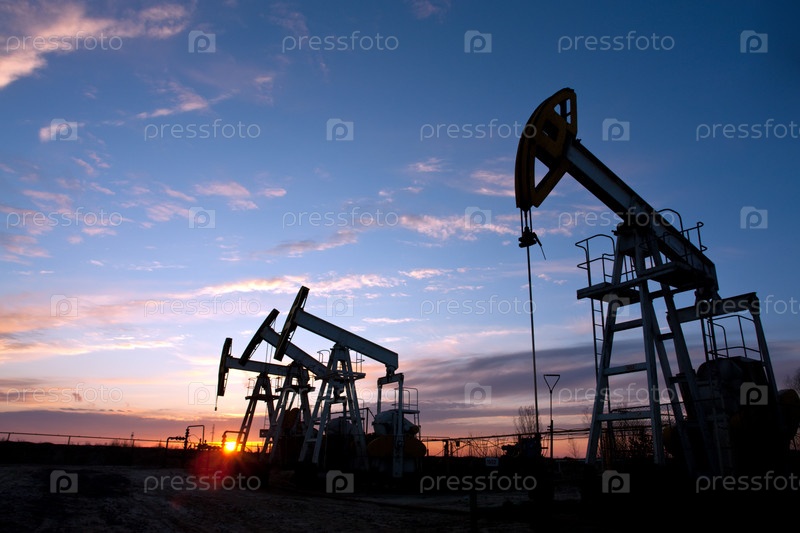 Нефтяные насосы на фоне заката