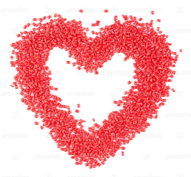 Красное пластиковое сердце на белом фоне