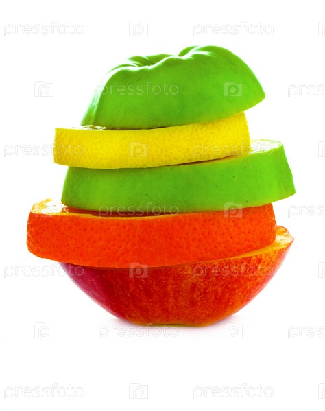 Фруктовый микс, изолированный на белом фоне