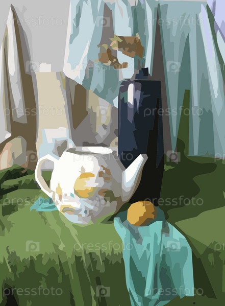 Натюрморт с чайником и вазой на столе