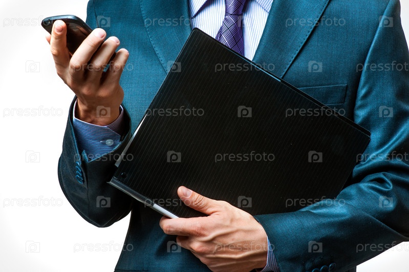 Бизнесмен держит в руках смартфон
