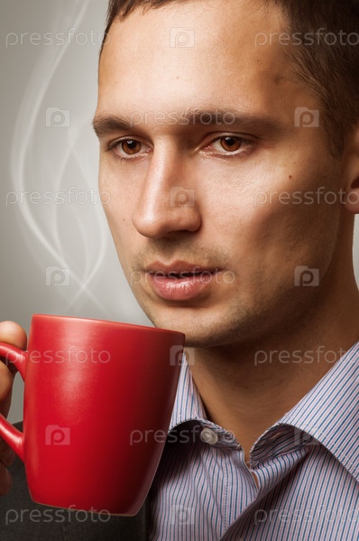 Мужчина держит чашку кофе