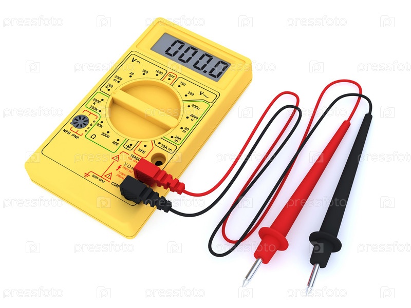 Желтые цифровой мультиметр на белом фоне